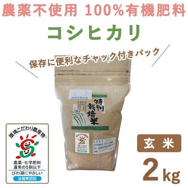 滋賀県産 無農薬100%有機肥料 コシヒカリ玄米 2kg 令和7年産