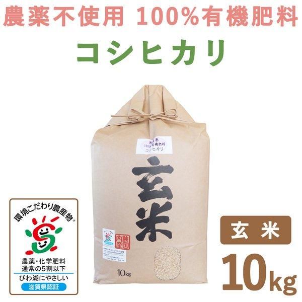 新米 滋賀県産 無農薬100%有機肥料 コシヒカリ玄米 10kg 令和7年産