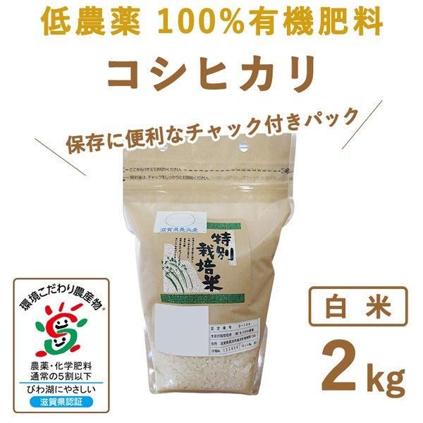 滋賀県産 低農薬100%有機肥料 コシヒカリ 白米2kg 令和6年産